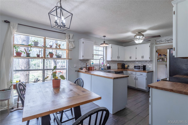 Located in the desirable Blue Ridge North subdivision off Jasmine Hill Road, this 3-bedroom, 2-bath home offers peaceful, serene living with easy access to the city. Inside, you’ll find a spacious open den and family room with vaulted ceilings, a beautiful stone fireplace, and French doors leading to a bright sunroom overlooking the wooded lot. The kitchen features butcher block countertops, tile backsplash, ample cabinetry, a breakfast bar, and a sunny breakfast area with great views. The large laundry room includes a side entrance with ramp access. The private primary suite is located at the end of the hall and offers a walk-in closet and direct access to the back deck. The en-suite bath includes a large vanity and tiled shower. Two additional bedrooms are generously sized with large closets and scenic views, and the hall bath features a tiled tub/shower combo. Enjoy the outdoors on the spacious back deck overlooking the peaceful setting. A durable metal roof adds long-term value. This home is a perfect blend of comfort, privacy, and natural beauty—schedule your showing today!