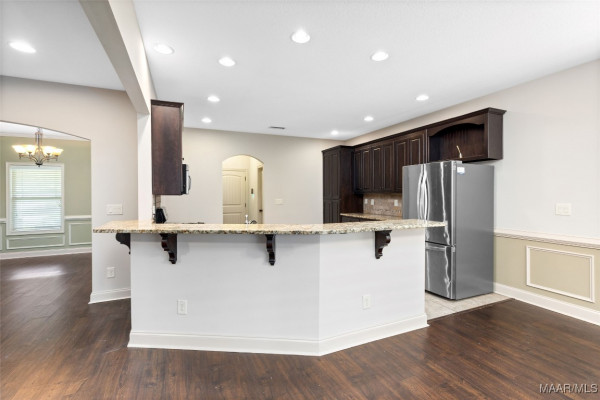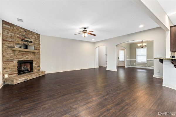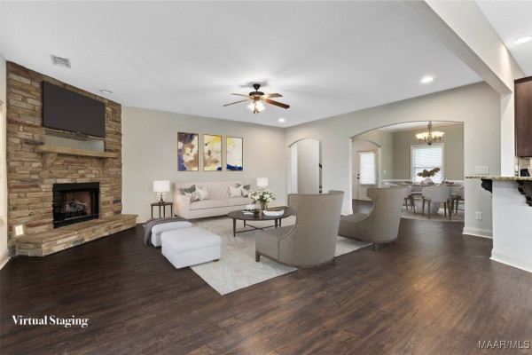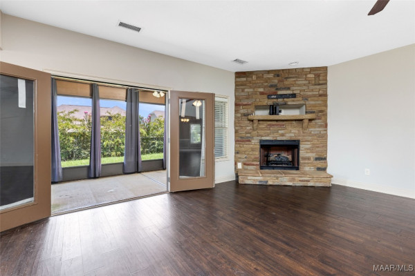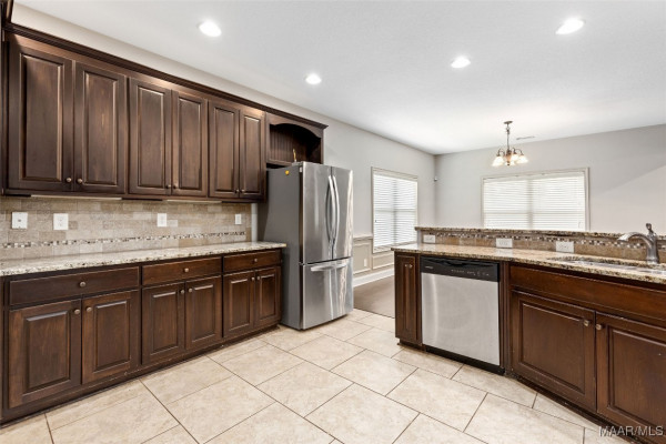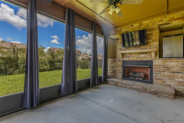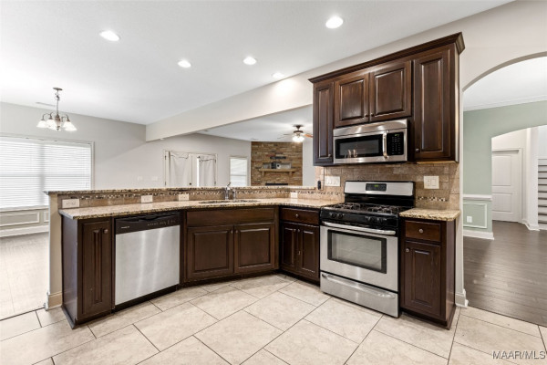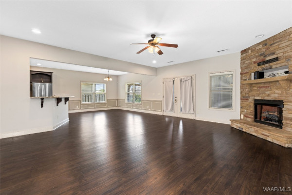 Enjoy cooking and entertaining in the stylish kitchen complete with a bar, eat-in area, and formal dining room—perfect for gatherings. French doors lead to an enclosed back patio featuring a cozy fireplace, creating a warm and inviting space year-round. The fenced backyard offers privacy and room to play or garden.