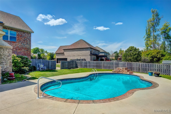 Welcome to 440 New Providence Way! This five bedroom, 3 full bathroom and one half bathroom home is a Pike Road oasis seated in the highly desirable Providence neighborhood. This home boasts a sprawling open floor plan with all of the formal areas needed for entertaining guests or just a large family. The main level boasts a formal sitting area, dining room with coffered ceilings, half bathroom, large living room, master suite, and kitchen and laundry room. The chefs kitchen is equipped with ample cabinets and counter space, granite counter tops, tile backsplash, stainless steel appliance package, pantry, large sink and an awesome view of the backyard. The master suite is expansive and offers a large walk-in closet, double vanity, stand up shower, garden tub, and water closet. The second level has a large den, four good sized guest bedrooms, storage, and two full guest bathrooms. This home also features a awesome backyard pavilion with granite counter tops, wood burning fire place with a stone mantel, and room for an outdoor kitchen to be added. Some of the other notable features include a beautiful pool, patio, and a two car garage. This home is ready for its new owners! Call me or your preferred realtor today to schedule your own private showing today!