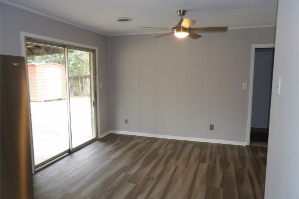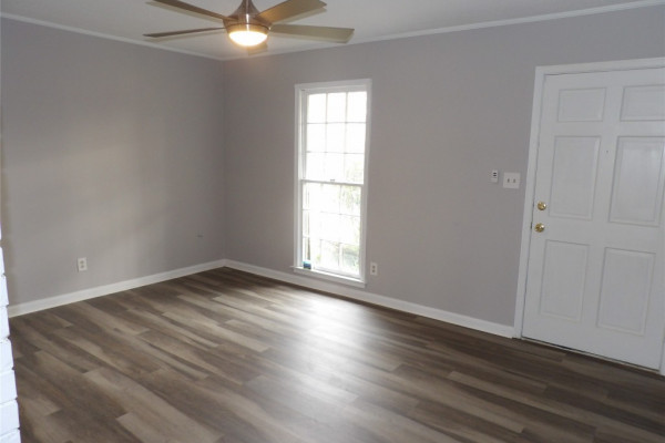 Newly renovated 4-bedroom 2 bath home in well-established neighborhood in Montgomery East. This move-in ready home offers separate living room and kitchen/dining room with separation of beautiful brick columns to the living room. The kitchen is equipped with new stainless-steel appliances (gas stove & refrigerator), new Formica countertops, and freshly painted cabinets. Interior freshly painted and bathrooms modernized. Spacious dining room overlooks covered patio and large fenced in backyard that’s perfect for children, pets and family entertainment. New light fixtures, doorknobs and laminate flooring throughout. Home also comes with a new washer and dryer. Conveniently located near shopping, schools, mall, restaurants, churches, hospitals, military bases and interstate.