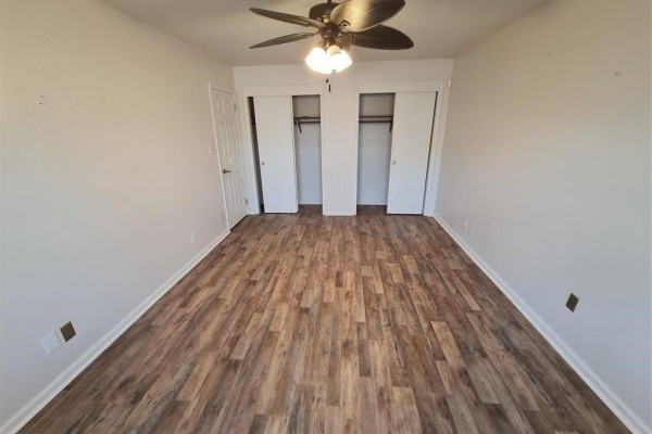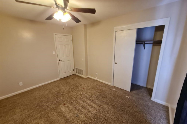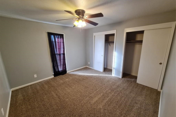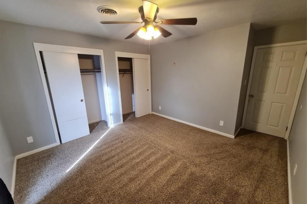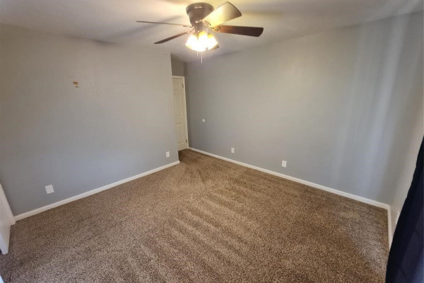 Renovations completed in 2022 include fresh interior paint, new fascia boards, new carpet and tile flooring, a new water heater, six-panel interior and closet doors, updated bathroom sinks and vanities, new door hardware, blinds, ceiling fans, light switches, plugs, and updated kitchen moldings. The exterior was also professionally pressure washed.
