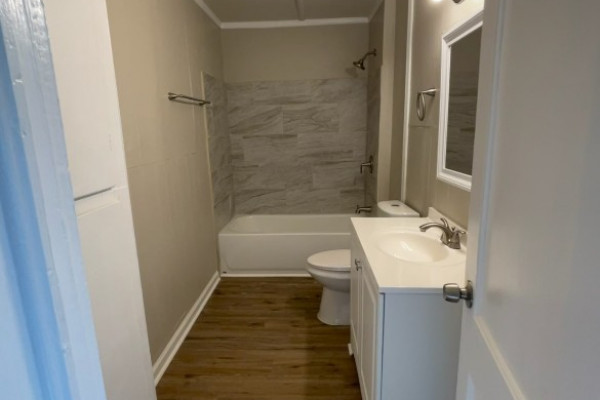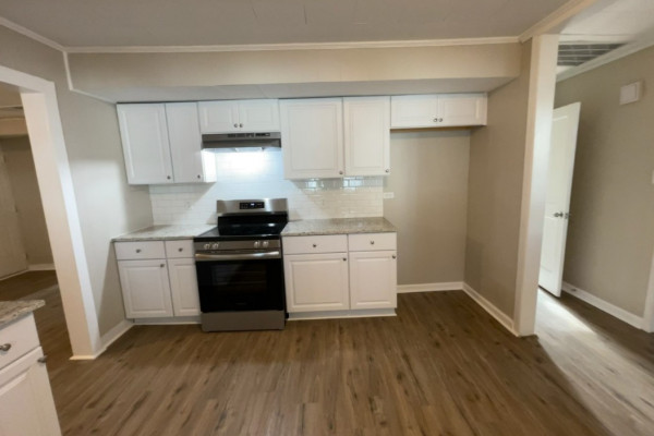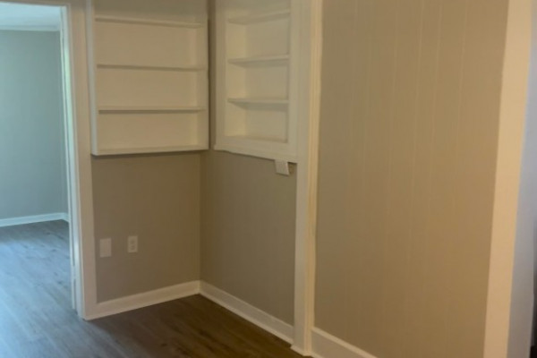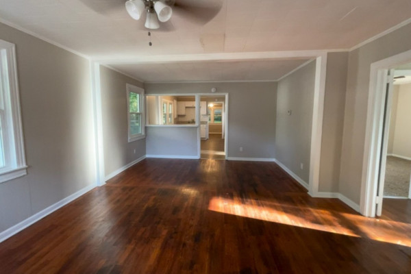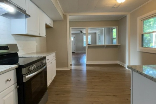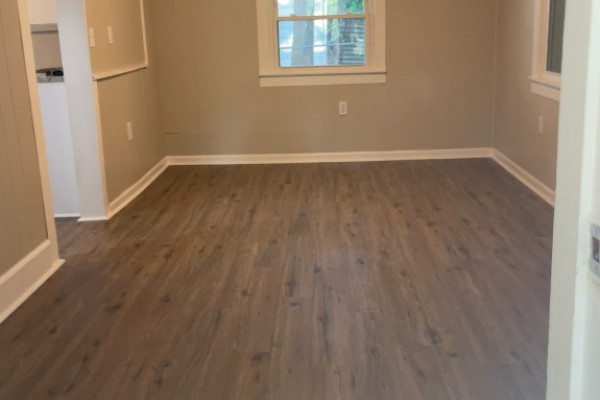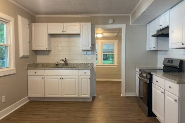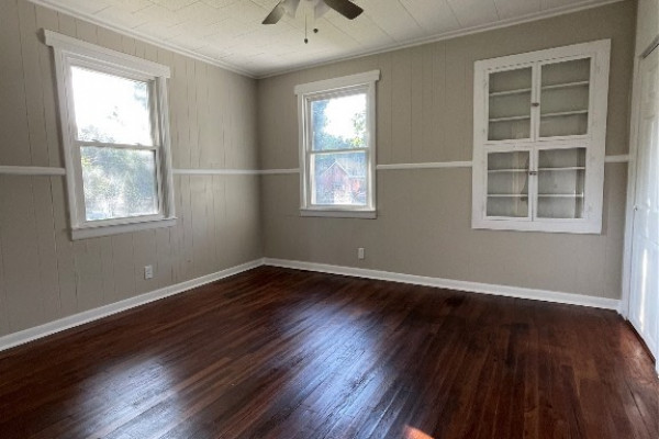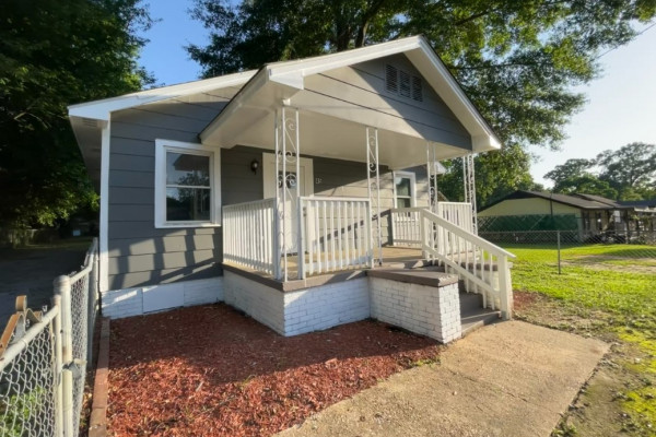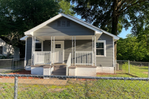 The bathroom has a tub/ shower combo and has been fully updated with a modern vanity, custom tile, and a linen cabinet. Additional features include a large laundry room, attached storage room with a separate entrance, a private back porch, and a fenced yard that adds extra appeal for tenants. There’s an empty lot next door offering more privacy. The inviting front porch creates great curb appeal and a warm, welcoming entry with a doorbell. The long drive way gives ample parking and extends to the back for rear parking.
