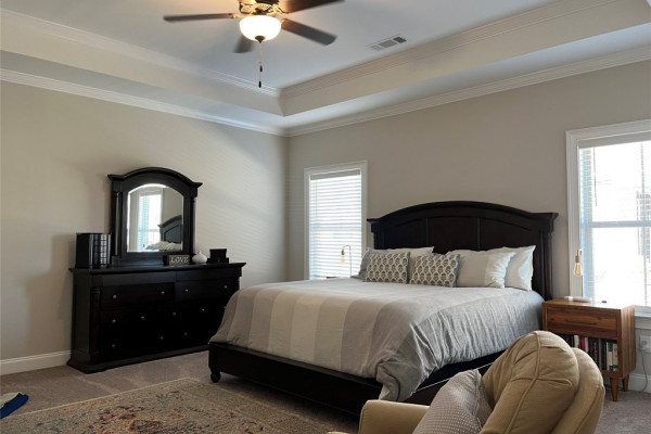 Built in late 2021, this Gorgeous Four bedroom, Four bath plan with oversized Bonus room located in Boykin Lakes (Pike Road) is comfortably situated in a cul-de-sac offering a spacious lot bordering the neighborhood lake offers plenty of room to relax and entertain. Currently occupied through June 30, 2025, this home will be available for lease starting July 1, 2025. Enjoy the fenced back yard which includes an extended concrete patio and covered area. Entering this home you will find many upgrades from wainscoting, coffered ceilings, and granite countertops. A refined foyer entry way opens into a roomy kitchen and living/entertaining space. The open kitchen includes a large center island with granite countertops, SS appliances, and plenty of storage space. The master quarters provides a large bedroom and walk in closet, as well as a luxurious bathroom complete with a double vanity, garden/soaking tub, and large tiled shower. The bonus room located upstairs includes a full bathroom and has plenty of possibilities as an entertainment area, office space, or extra bedroom. The living areas are covered with beautiful hardwood flooring.