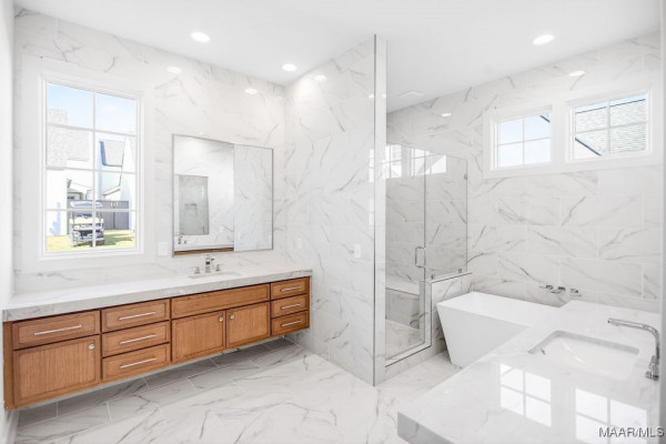 This Hudson is a one-of-a-kind customized home located on Hampstead’s preserve in Phase 6. This stunning property features the best of interior finishes and thoughtful detailing. The heart of the home is the open plan Kitchen and Living space that overlooks the park space. The tranquility of the location is matched only by the luxurious finishes, including oak cabinetry, marble countertops, top tier appliances, wood floors, custom tile work and and so much more. The Primary Suite and a Study are located on the ground floor overlooking the spacious, private courtyard. Upstairs are 3 additional Bedrooms and 2 Bathrooms.