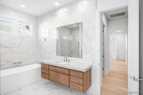 This Hudson is a one-of-a-kind customized home located on Hampstead’s preserve in Phase 6. This stunning property features the best of interior finishes and thoughtful detailing. The heart of the home is the open plan Kitchen and Living space that overlooks the park space. The tranquility of the location is matched only by the luxurious finishes, including oak cabinetry, marble countertops, top tier appliances, wood floors, custom tile work and and so much more. The Primary Suite and a Study are located on the ground floor overlooking the spacious, private courtyard. Upstairs are 3 additional Bedrooms and 2 Bathrooms.