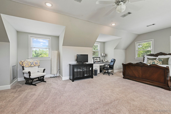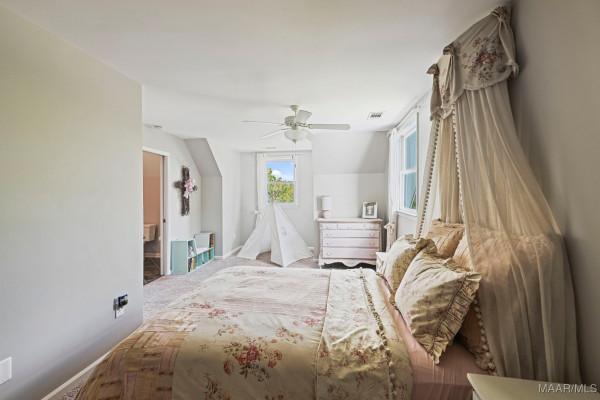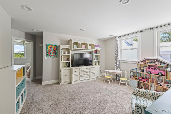 Upstairs, two bedrooms share a Jack-and-Jill bathroom, while a versatile playroom or secondary bonus area provides even more space to spread out.