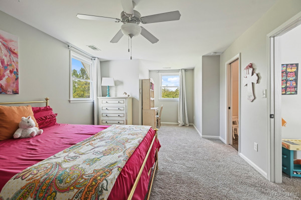 Upstairs, two bedrooms share a Jack-and-Jill bathroom, while a versatile playroom or secondary bonus area provides even more space to spread out.