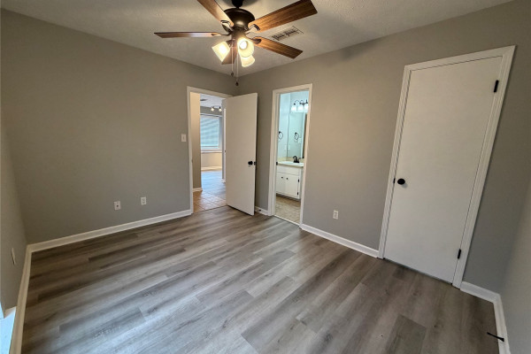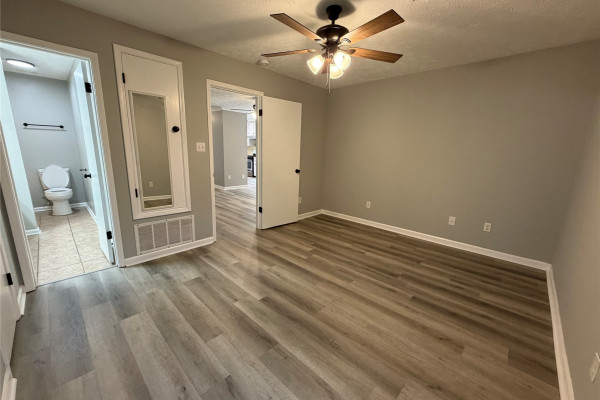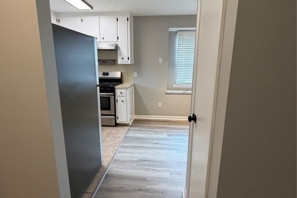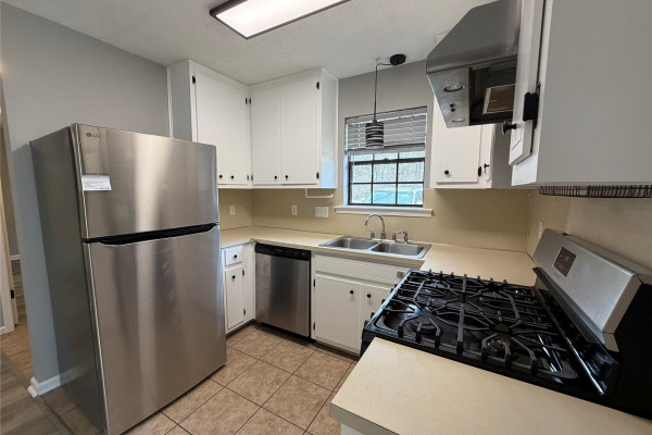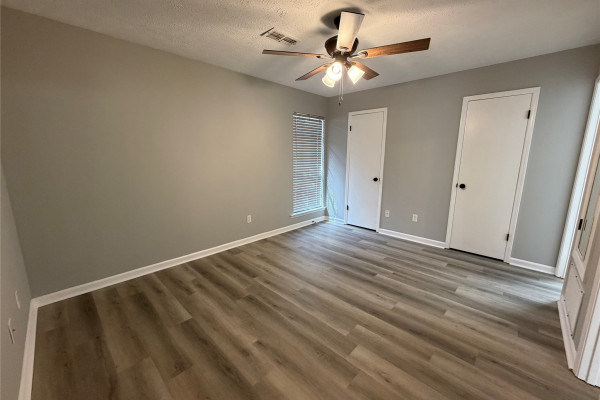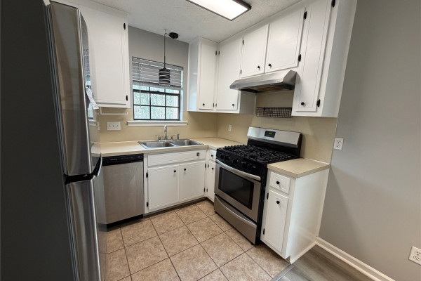 Available March 7, 2026 – This 2 bedroom 2 bath duplex has been upgraded throughout and comes complete with gas oven, refrigerator and dishwasher. The split floor plan allows for privacy in the unit and each bedroom has its own bath, with guest access to the front bath. The laundry room is located to the back of the home on the way to the back yard. The back yard has a covered patio, an attached storage room which also houses the water heater and a fully fenced back yard.