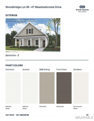 Looking for a BEAUTIFUL , NEW, STONE MARTIN BUILDERS community to live just minutes from CHARMING downtown Wetumpka and the LOVELY, Lake Jordan?  Special incentives available! Please ask for details. The Berkshire cottage makes the most of every square foot. A welcoming foyer leads to a vaulted great room that feels open and inviting. The main suite is thoughtfully positioned at the front of the home, offering enhanced privacy and a spacious layout. Its en-suite bath includes a granite vanity, garden tub, and separate tiled shower for a relaxing escape. The kitchen flows efficiently into daily living, with a nearby laundry room designed to reduce household noise. A covered rear patio adds outdoor versatility—ideal for entertaining or winding down in comfort.