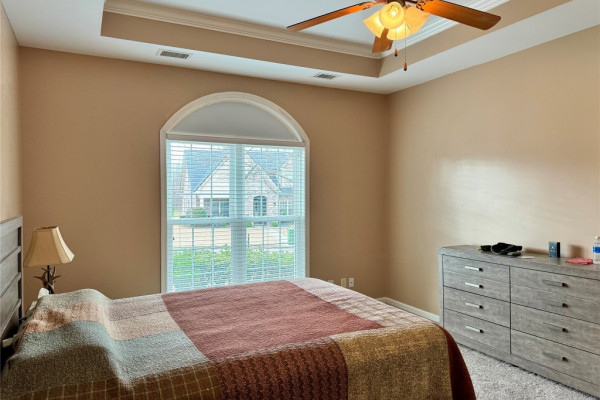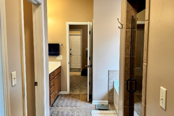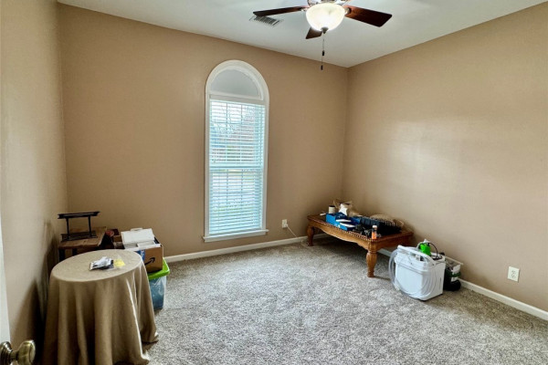 The primary suite is generously sized and adjoins an additional room suitable for a home office, nursery, or flexible living space. A split floor plan provides two additional bedrooms and a full bath on the opposite side of the home for added separation. Fresh interior paint enhances the home’s clean, move-in-ready feel.