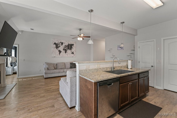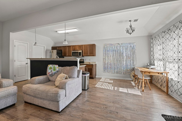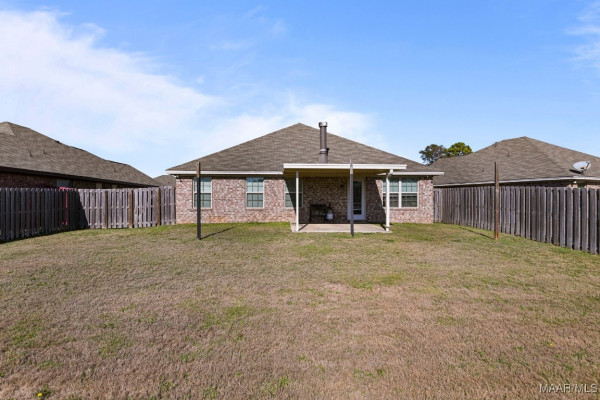 Located in a beautiful neighborhood just minutes from Prattville and Maxwell Air Force Base, this inviting 3-bedroom, 2-bath home is designed for comfortable everyday living and easy entertaining. The open floor plan flows seamlessly from the kitchen into the family room, where a large island with breakfast bar and granite countertops create the perfect gathering space. The family room is anchored by a cozy wood-burning fireplace and enhanced by soaring 10-foot ceilings. Thus home offers abundant storage, including a spacious primary walk-in closet, a dedicated laundry room, and an additional storage closet in the garage. Built with energy efficiency in mind, it features spray foam insulation, Low-E windows, and a heat pump for year-round comfort and savings. You will love the private backyard with a full fence and a peak at the pond behind. This well-appointed home combines convenience, efficiency, and style in a location that can’t be beat.
