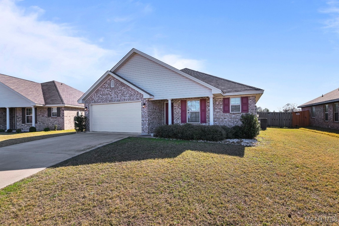 Located in a beautiful neighborhood just minutes from Prattville and Maxwell Air Force Base, this inviting 3-bedroom, 2-bath home is designed for comfortable everyday living and easy entertaining. The open floor plan flows seamlessly from the kitchen into the family room, where a large island with breakfast bar and granite countertops create the perfect gathering space. The family room is anchored by a cozy wood-burning fireplace and enhanced by soaring 10-foot ceilings. Thus home offers abundant storage, including a spacious primary walk-in closet, a dedicated laundry room, and an additional storage closet in the garage. Built with energy efficiency in mind, it features spray foam insulation, Low-E windows, and a heat pump for year-round comfort and savings. You will love the private backyard with a full fence and a peak at the pond behind. This well-appointed home combines convenience, efficiency, and style in a location that can’t be beat.