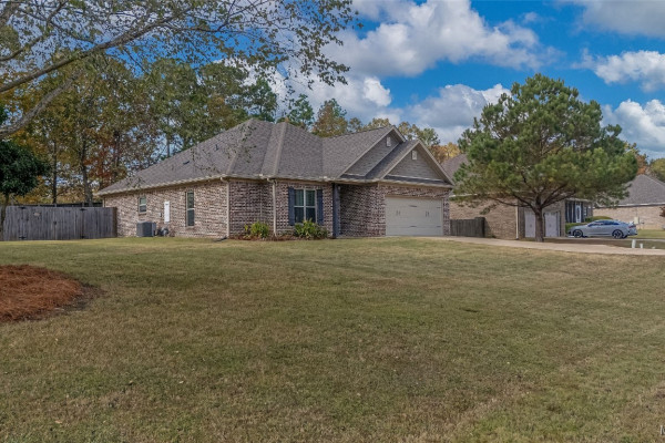 This home features a desirable split floor plan, with the primary suite on one side and the guest bedrooms and bathroom on the other. The two guest bedrooms are generously sized and share a hall bath complete with a large vanity topped with granite and a tub/shower combo.