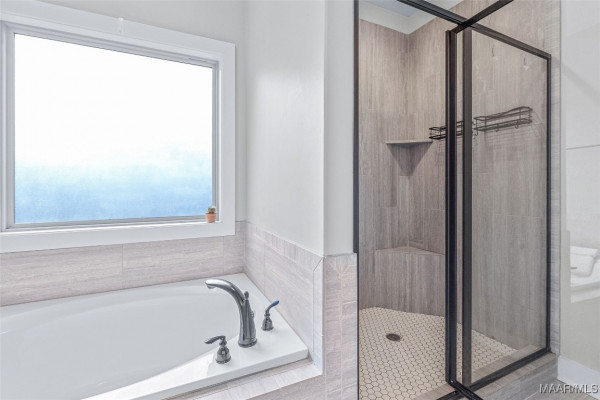 The primary suite offers plenty of space, including a HUGE walk-in closet and an attached bath featuring a separate shower, large vanity, and garden tub.