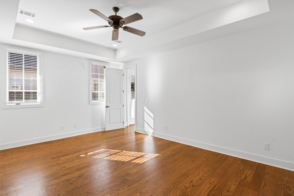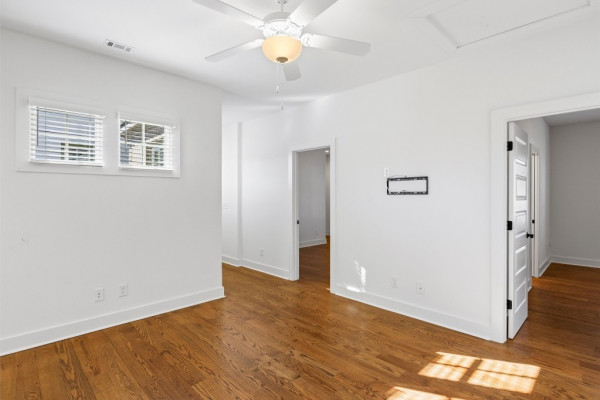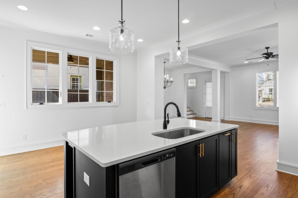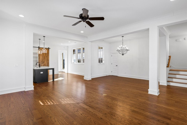 Surrounded by mature trees with a beautiful view, this home offers spacious living with an open dining and kitchen area ideal for entertaining. The kitchen features stainless steel appliances, custom cabinetry, quartz countertops, floating shelves for added storage and extra appliances, and a butler’s pantry. The primary suite includes his-and-hers walk-in closets and a spa-like bath with dual vanities and a large soaking tub. Upstairs are three additional bedrooms, two full bathrooms, a sitting area, and a storage closet, with wood floors throughout. Additional highlights include a tankless water heater, private courtyard, and 2.5 bay garage with golf cart bay. Located in the internationally award-winning Hampstead community offering parks and preserves, tennis courts with on-site pro, playgrounds, dog park, two neighborhood pools, local restaurants, shops, library, and Montessori school.