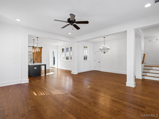 Surrounded by mature trees with a beautiful view, this home offers spacious living with an open dining and kitchen area ideal for entertaining. The kitchen features stainless steel appliances, custom cabinetry, quartz countertops, floating shelves for added storage and extra appliances, and a butler’s pantry. The primary suite includes his-and-hers walk-in closets and a spa-like bath with dual vanities and a large soaking tub. Upstairs are three additional bedrooms, two full bathrooms, a sitting area, and a storage closet, with wood floors throughout. Additional highlights include a tankless water heater, private courtyard, and 2.5 bay garage with golf cart bay. Located in the internationally award-winning Hampstead community offering parks and preserves, tennis courts with on-site pro, playgrounds, dog park, two neighborhood pools, local restaurants, shops, library, and Montessori school.
