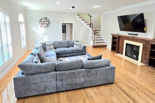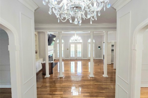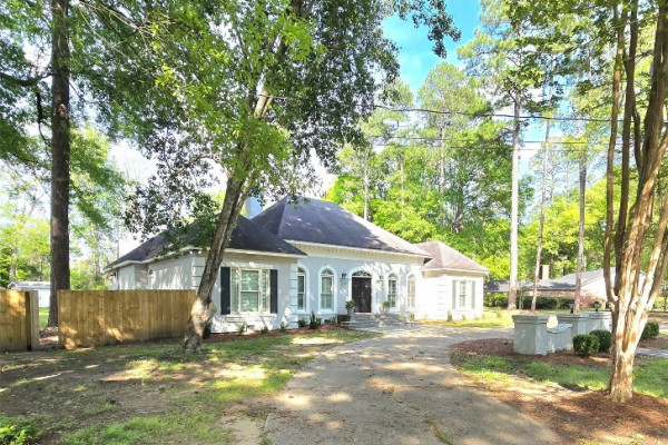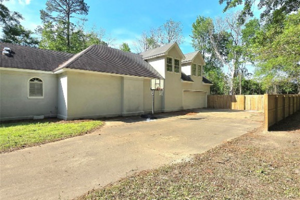 A Special Home! Enter the double front doors into a spacious foyer which leads to a large living area with gleaming hardwood flooring, fireplace, built-ins and a nice wet bar. The foyer also opens to a living room and a dining room. There are exquisite chandeliers in the living and dining rooms. The living area flows into the eat-in kitchen with stainless appliances, walk-in pantry and plenty of cabinets. There are two bedrooms and two baths on one side of the house and another bedroom and bath on the opposite side of the home. From the kitchen, you have a storage/all purpose room and a separate laundry room. The storage/all purpose room is large enough for extra freezers and/or refrigerators. Step down into a huge windowed family room with a fireplace, and closets across one wall. There is a half bath off this room. Upstairs there is a bedroom and bath with a jetted tub. Double garage with extra storage provides convenient entrance into the home without going outside. Home sits on over three-fourths of an acre with a circular concrete drive in the front and a concrete drive on the side to the garage. Privacy fence surrounds the back of the property. The backyard does need some work on the landscaping. Don’t miss this home.