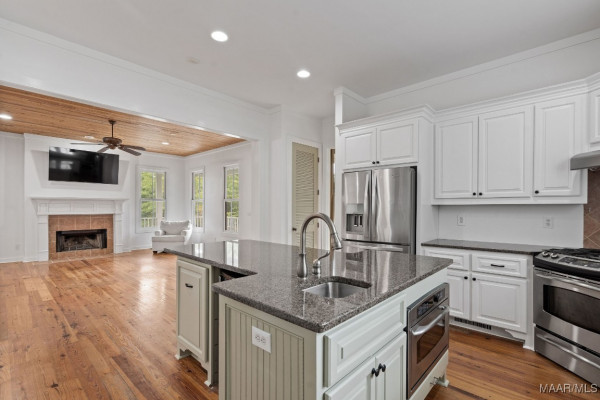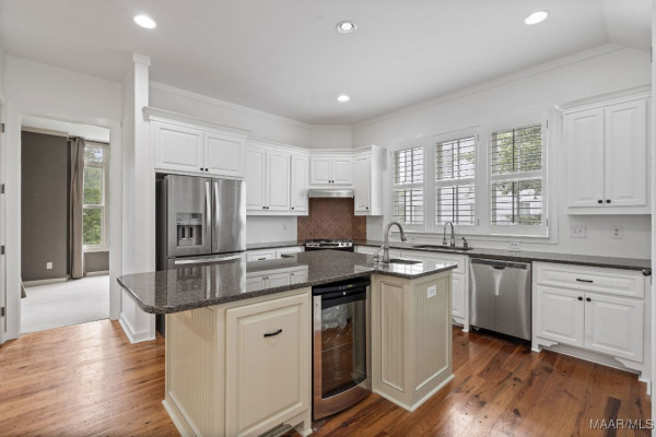 Discover this stunning one owner home nestled on a picturesque tree lined street in the sought after traditional neighborhood development of The Waters in Pike Road, Alabama. This 3 bedroom, 2.5 bathroom residence combines timeless charm with modern comforts. The inviting wrap around porch, with classic Southern charm, overlooks the tree lined street of Avenue of the Waters. Heart pine floors in the main living areas surround the fireplace and heart pine ceiling feature create a warm and inviting atmosphere. Custom cabinetry surround the cook’s kitchen with large island and custom appliances. The dining room receives abundant natural light setting the stage for the perfect meal or entertaining event. Large primary bedroom with double vanities and whirlpool tub and separate shower. Additional bedrooms on second floor. Don’t miss the large back porch with stone fireplace and additional storage under the house. In addition to the home features are the many amenities that are offered at The Waters with two pools, three lakes, pickleball courts, tennis courts, boats, fishing, kayaking and the list goes on.