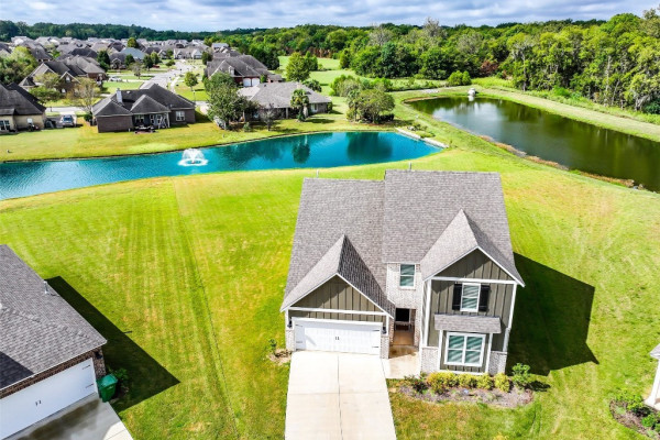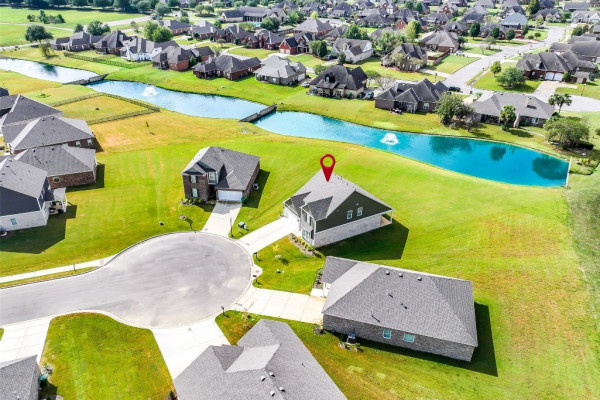 Step in to this one year old home that feels just like new – without the wait of new construction! Situated on one of the community’s desirable water view lots, this property was built with a paid lot premium, offering added value and a beautiful setting. Thoughtfully designed with a versatile layout, this home offers a stylish, open and modern feel with seamless flow between the Great Room, Dining Room and Kitchen areas. The chef’s kitchen is a true centerpiece, featuring a gas range, shaker – style cabinets, granite countertops and plenty of workspace for cooking and entertaining. The main level Primary Suite is tucked away for privacy, complete with a spa-like en suite bath boasting a large soaking tub, separate stand up shower, double vanities and a generous walk in closet. Also downstairs is a Secondary Bedroom and full Bath for added convenience. Upstairs, a spacious second living area anchors two additional Bedrooms and another Full Bath – perfect for guests, teens or a private retreat. Relax outside on the covered back patio with views of the lake and fountain. Located in a quiet cul-de-sac, this home is located on one of the larger lots. It features Smart Home technology – The Qolsys panel is the central hub that talks to all the devices of your smart home. This award winning panel bridges the entire suite of products with Bluetooth capability, Wi-Fi integration Z-Wave access and cellular connectivity. The gated Taylor Lakes neighborhood enhances your lifestyle with a brand new clubhouse, fitness space and sparkling community pool. Conveniently located near shopping, dining and entertainment, this home combines comfort, convenience and a premium lot location.