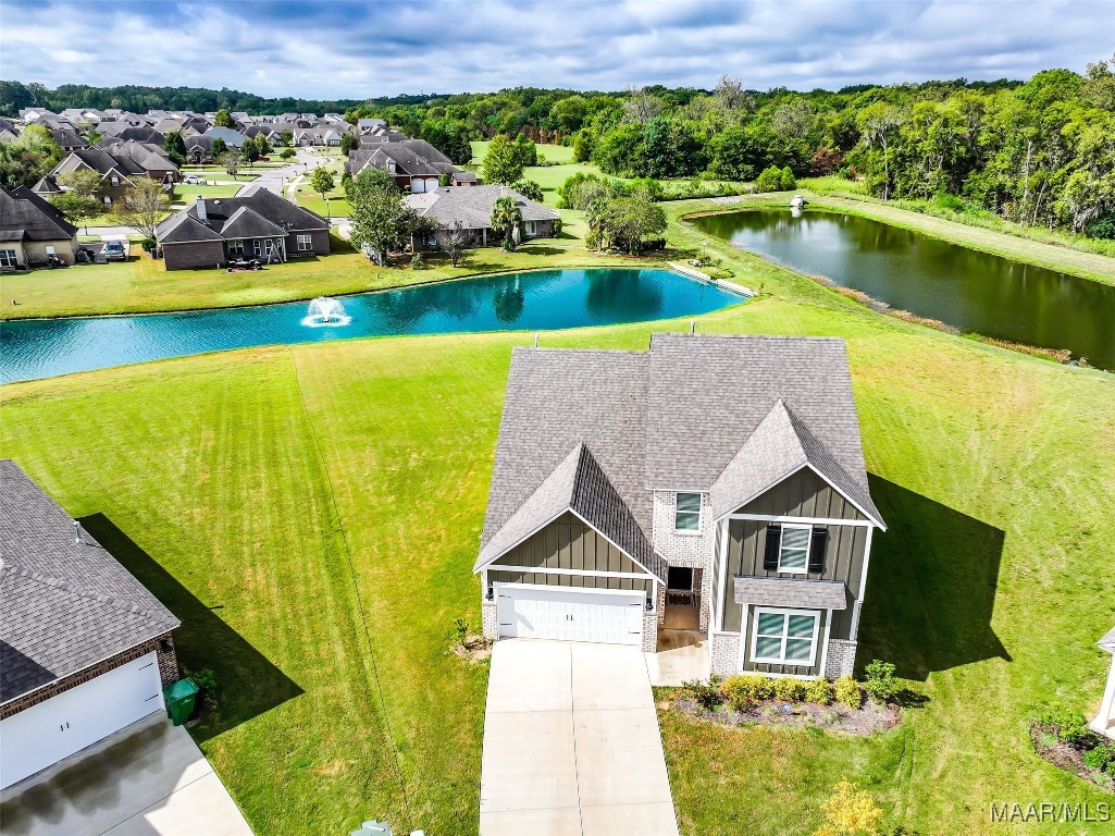 Step in to this one year old home that feels just like new – without the wait of new construction! Situated on one of the community’s desirable water view lots, this property was built with a paid lot premium, offering added value and a beautiful setting. Thoughtfully designed with a versatile layout, this home offers a stylish, open and modern feel with seamless flow between the Great Room, Dining Room and Kitchen areas. The chef’s kitchen is a true centerpiece, featuring a gas range, shaker – style cabinets, granite countertops and plenty of workspace for cooking and entertaining. The main level Primary Suite is tucked away for privacy, complete with a spa-like en suite bath boasting a large soaking tub, separate stand up shower, double vanities and a generous walk in closet. Also downstairs is a Secondary Bedroom and full Bath for added convenience. Upstairs, a spacious second living area anchors two additional Bedrooms and another Full Bath – perfect for guests, teens or a private retreat. Relax outside on the covered back patio with views of the lake and fountain. Located in a quiet cul-de-sac, this home is located on one of the larger lots. It features Smart Home technology – The Qolsys panel is the central hub that talks to all the devices of your smart home. This award winning panel bridges the entire suite of products with Bluetooth capability, Wi-Fi integration Z-Wave access and cellular connectivity. The gated Taylor Lakes neighborhood enhances your lifestyle with a brand new clubhouse, fitness space and sparkling community pool. Conveniently located near shopping, dining and entertainment, this home combines comfort, convenience and a premium lot location.