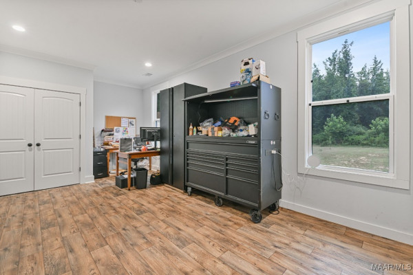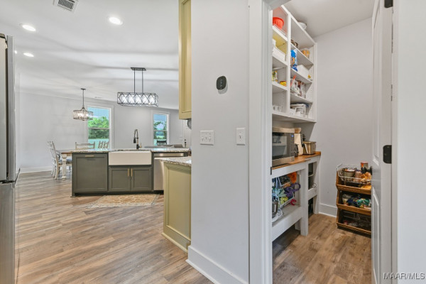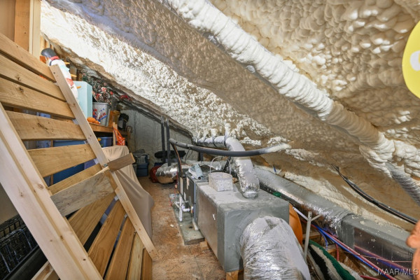 Upstairs, you’ll find a cozy reading nook or office space, 3 more bedrooms, 2 full baths, and a large bonus room, ideal for a playroom, media room, or homeschool room. Storage is no issue with two floored walk-in attic spaces, both outfitted with built-in shelving.