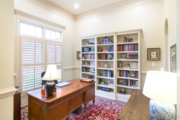 The functional layout includes a dedicated study/home office and a spacious primary suite featuring a private sitting area, perfect for a quiet retreat or reading nook off of the tons of built in bookshelves in both the study and primary bedroom. The primary bath is a true escape with a large soaking tub and an oversized walk-in shower. There is a real Cedar closet in the primary bedroom for all of your wool and winter items.