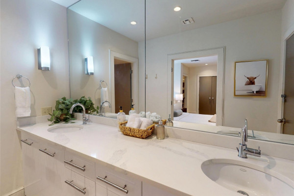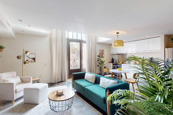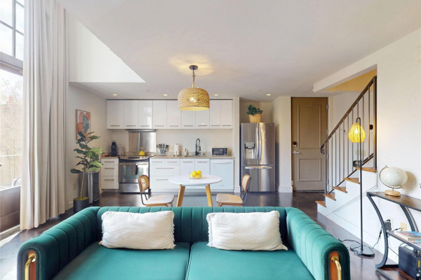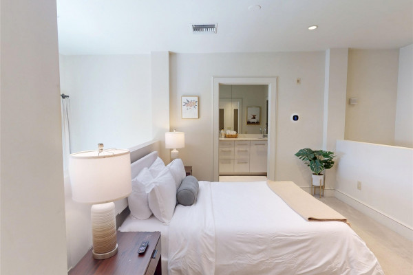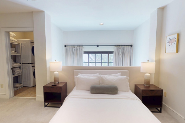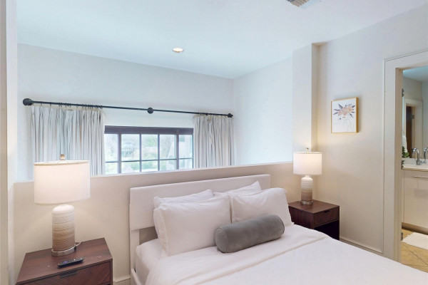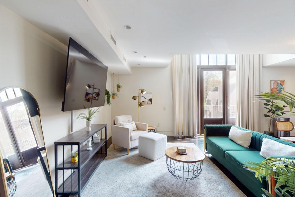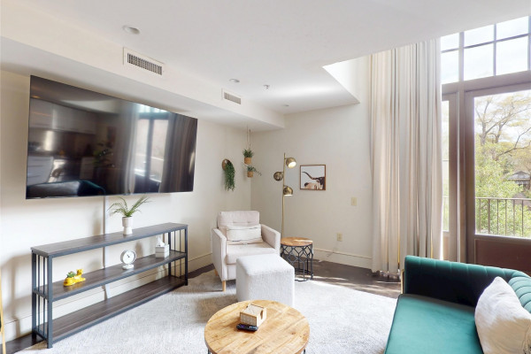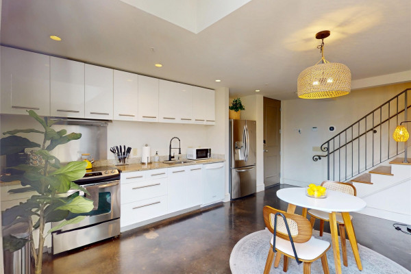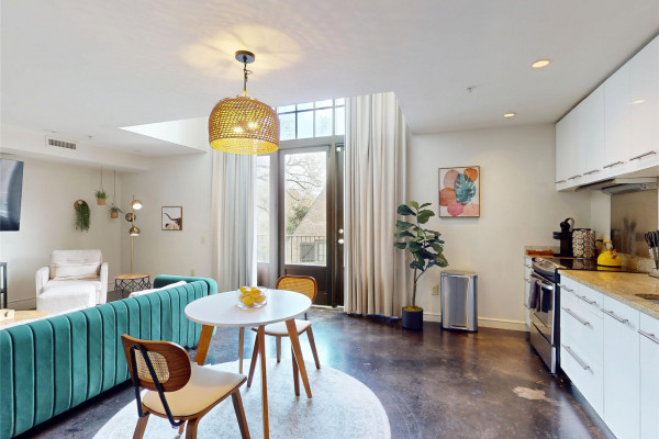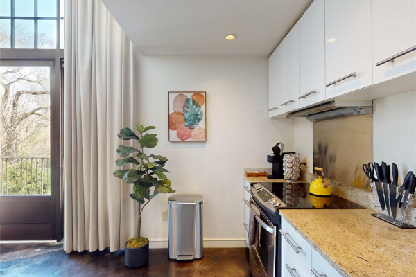 Your chance to own a modern A&P Loft AND turnkey short-term/midterm/longterm rental business. All furniture, appliances, programmable thermostat, and schlage lock are included! This unit designed by McAlpine Tankersley Architecture features an open living area on the first floor with stained concrete floor. As well as a half bath, kitchen, dining area, and great views from the balcony. The kitchen has custom cabinets with lots of storage, stainless steel appliances, Black Facet, and marble countertops. The dining area sits right in the middle and offers a cozy area to work or eat, while soaking in the great light from 20′ window. Upstairs, you’ll find a carpeted bedroom with double closets that are extra large and the the laundry room. The full primary bathroom with custom cabinets, dual sinks, and marble countertops is spa-like. The A&P Lofts feature on-site shops, dining, and entertainment. A great lifestyle and location!