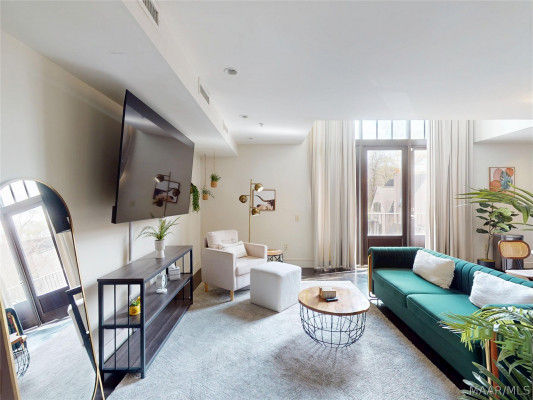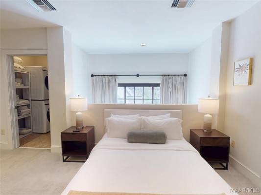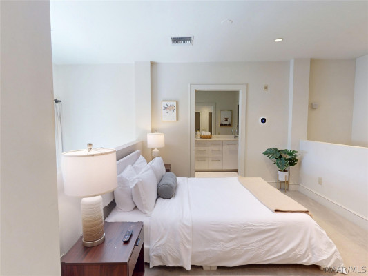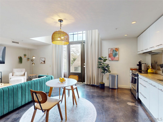 Your chance to own a modern A&P Loft AND turnkey short-term/midterm/longterm rental business. All furniture, appliances, programmable thermostat, and schlage lock are included! This unit designed by McAlpine Tankersley Architecture features an open living area on the first floor with stained concrete floor. As well as a half bath, kitchen, dining area, and great views from the balcony. The kitchen has custom cabinets with lots of storage, stainless steel appliances, Black Facet, and marble countertops. The dining area sits right in the middle and offers a cozy area to work or eat, while soaking in the great light from 20′ window. Upstairs, you’ll find a carpeted bedroom with double closets that are extra large and the the laundry room. The full primary bathroom with custom cabinets, dual sinks, and marble countertops is spa-like. The A&P Lofts feature on-site shops, dining, and entertainment. A great lifestyle and location!