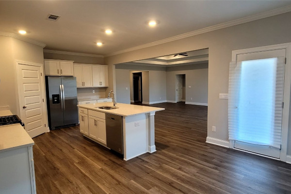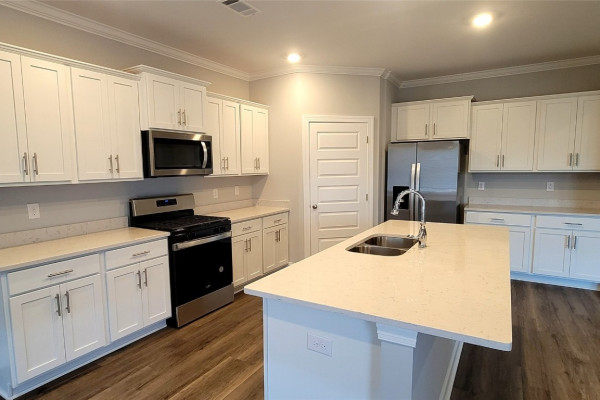 The Victoria Plan is Luxury Living at its finest. This traditionally styled single level home perfectly reflects your sense of style. First, welcome friends on the cozy front porch. Large Living/Family room with a spacious well-designed kitchen and casual dining area with a Huge Island as the centerpiece and lots of cabinet space. Lavish Main Bedroom with a gorgeous main bath. It boasts trey ceilings with plenty of space for large furniture. Three additional large bedrooms a second full bath, and a powder room. Quality materials and workmanship throughout with a 2 car garage.