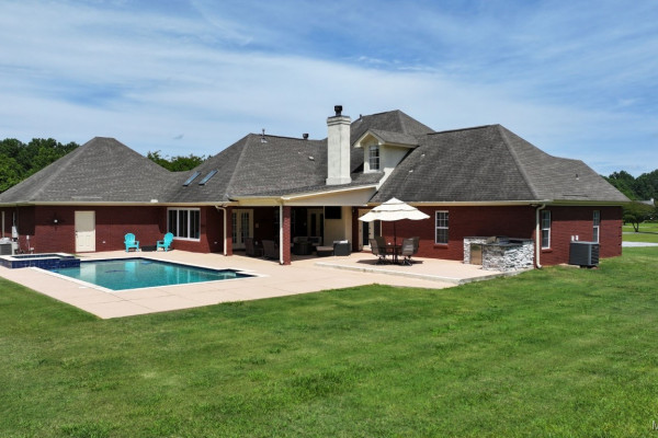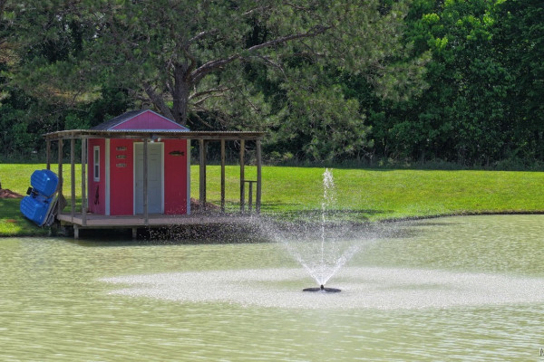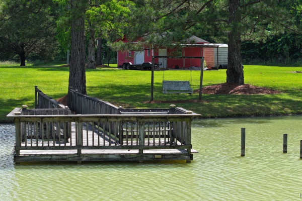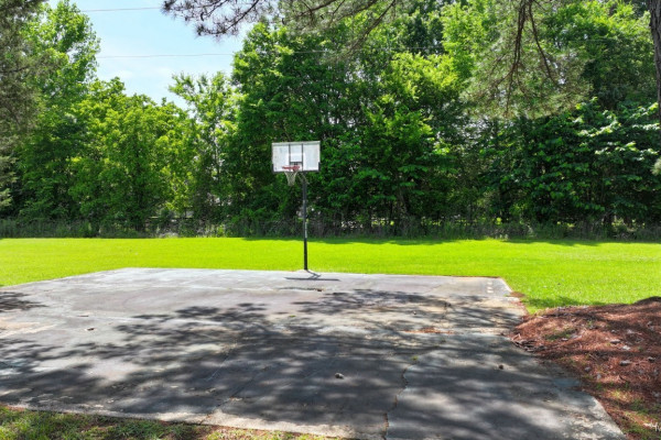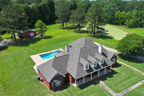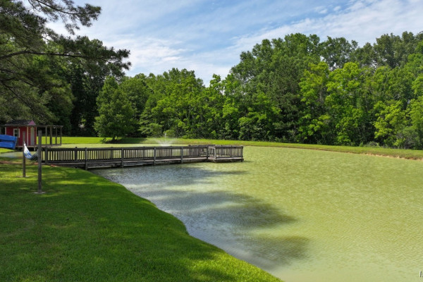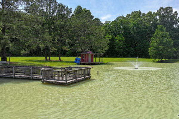 The property continues to impress with a basketball court, workshop barn, and a peaceful stocked pond filled with brim and bass. A pier, pond fountain, and a fish house with a covered deck overlooking the water create the ideal spot for morning coffee or sunset fishing. A circular driveway adds convenience and curb appeal.