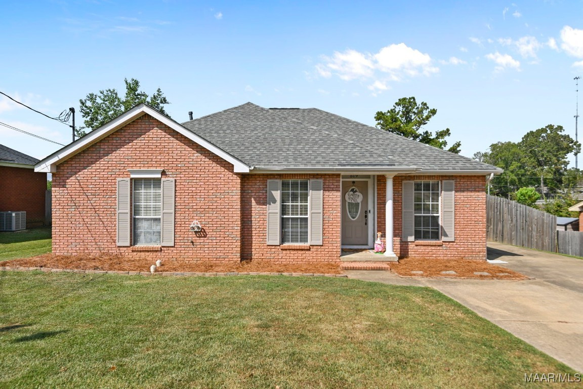 This three-bedroom, two-bath brick home offers a convenient location with easy access to everything Prattville has to offer. The family room includes a cozy gas fireplace and overlooks the backyard. A galley-style eat-in kitchen connects to the laundry room with access to the outdoors. All bedrooms are situated down the hall, away from the main living areas. The fenced backyard features a storage building, perfect for tools or extra storage. Recent updates include a roof and HVAC system, both approximately four years old, giving you peace of mind.
