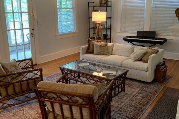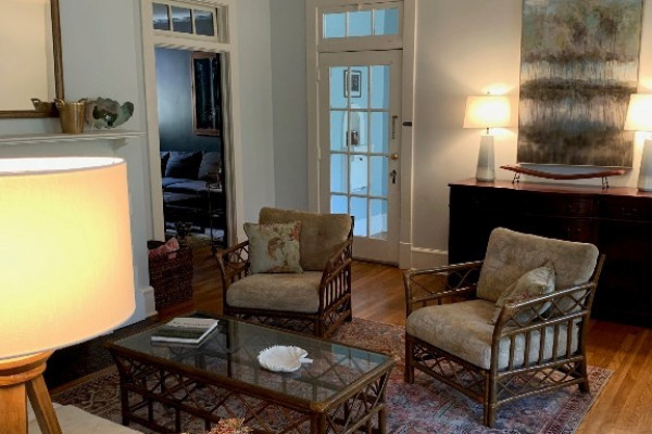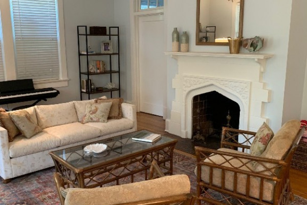 Charming 2nd floor condo at sought after Thorn Manor in Old Cloverdale. Fabulous living spaces with wood floors, tall ceilings, and transoms. Light filled front entrance takes you up into a stunning living room with gorgeous fireplace. Adjacent sunroom provides beautiful view of garden below. Dining room features lovely built in china cabinet. Galley style kitchen with excellent storage, stainless appliances, and breakfast room. Two spacious bedrooms with good closet space and hallway bath. Laundry room and 2nd staircase off kitchen leads to back covered parking space. Common courtyards and gardens add to wonderful ambience of this 1920’s gem. New roof 2025. A short walk to Cloverdale shops, restaurants and parks. Do not miss this exquisite, historic home.