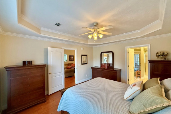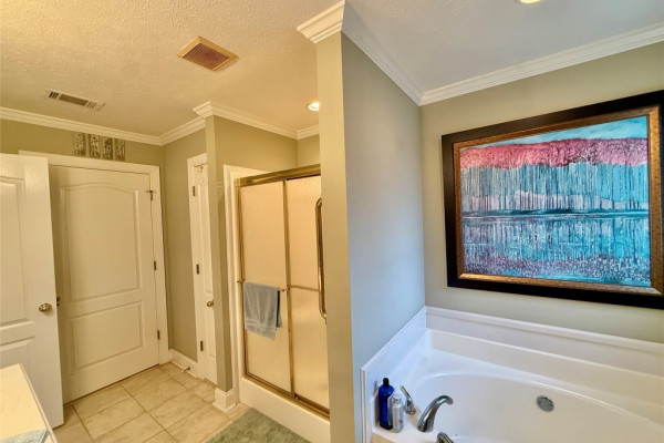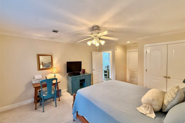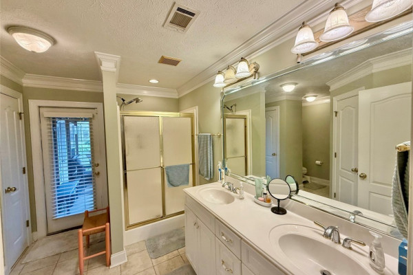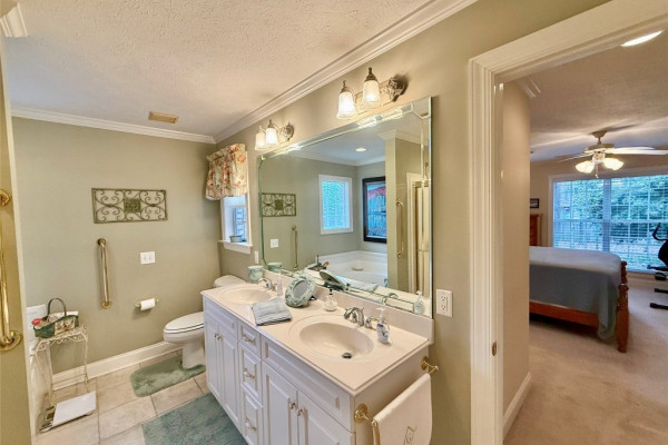 • Two primary bedrooms, each with a large attached bathroom, plus one additional guest bedroom