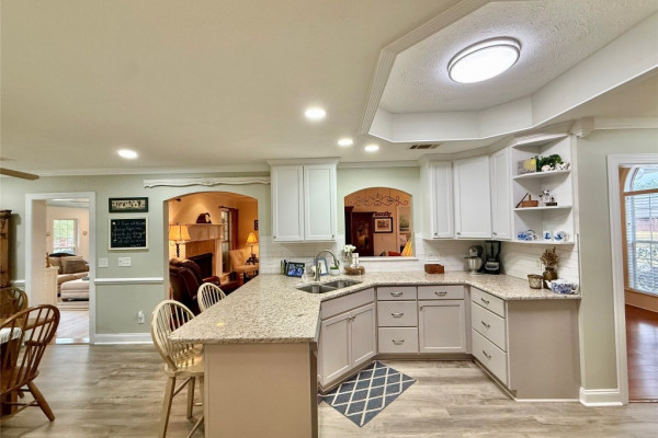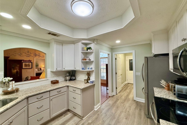 • Updated kitchen with brand-new custom cabinets, granite countertops, and an open layout