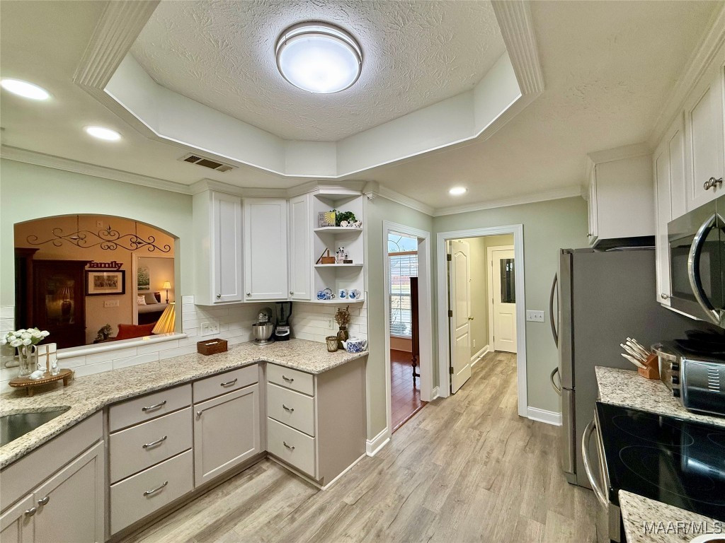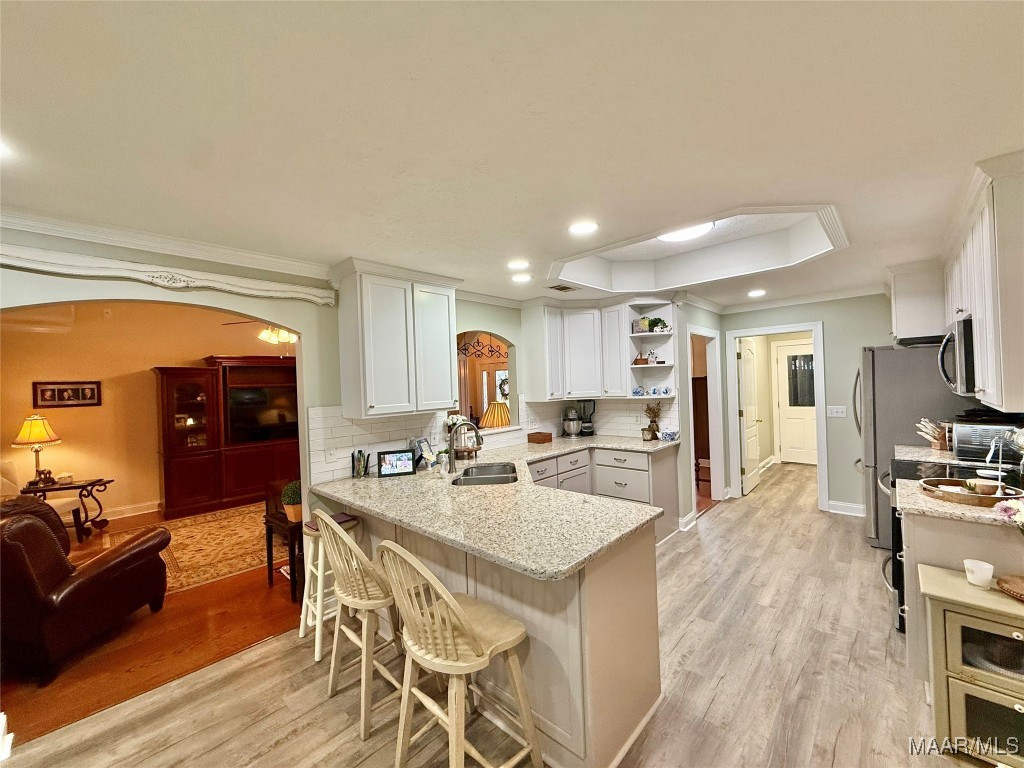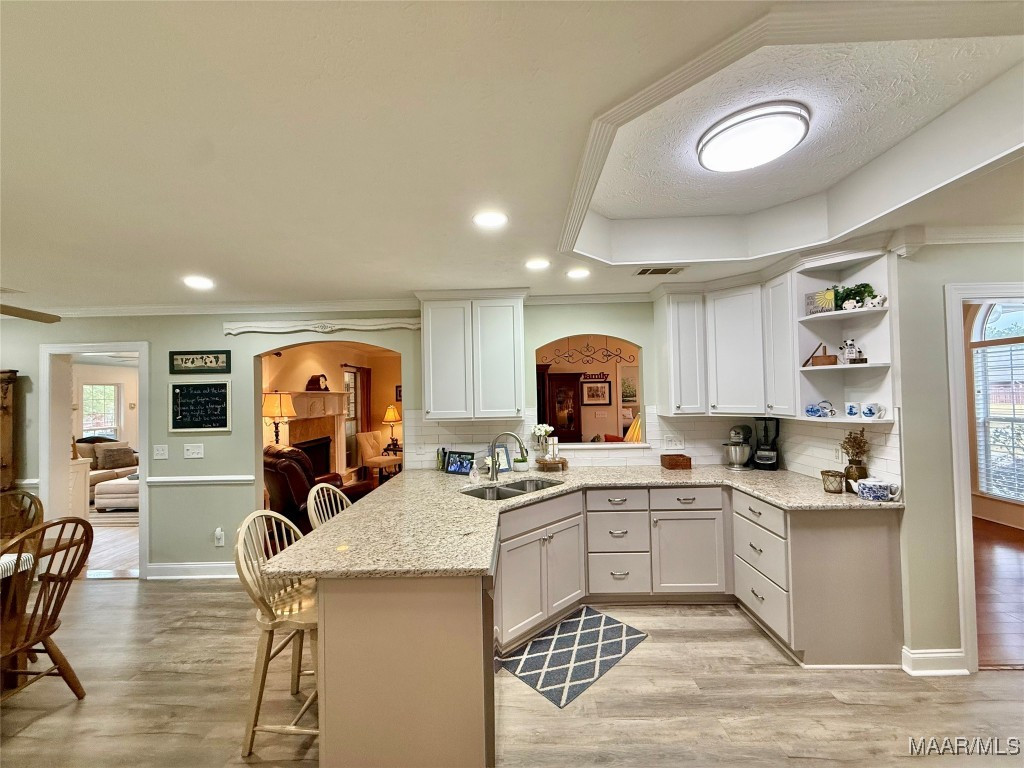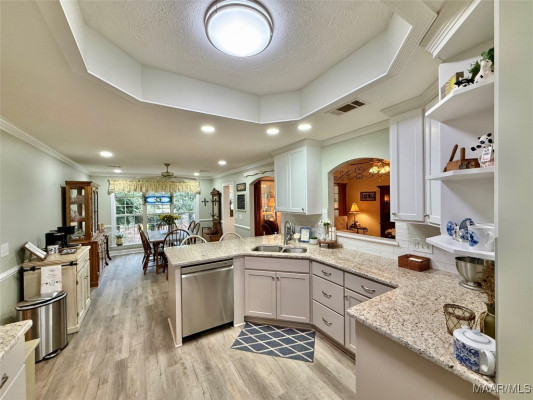 • Updated kitchen with brand-new custom cabinets, granite countertops, and an open layout