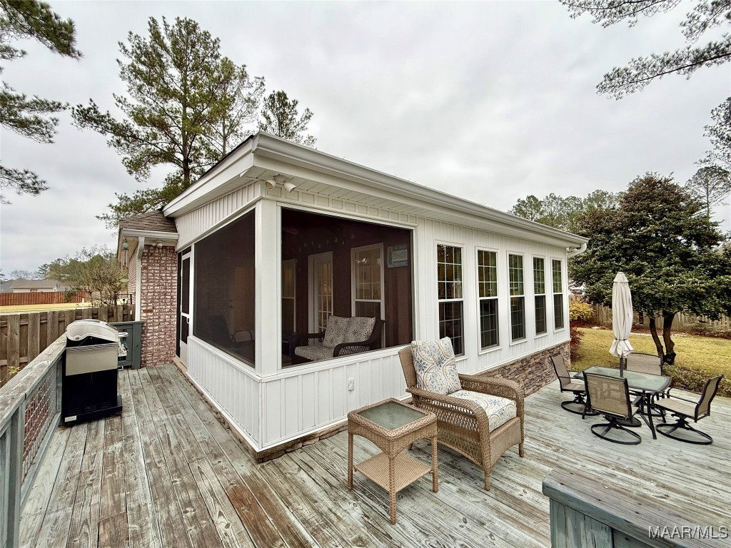 • Fenced backyard with a screened porch off the sunroom and a large deck ideal for entertaining
