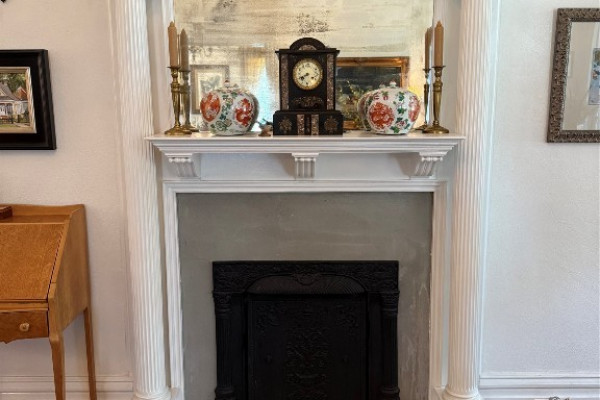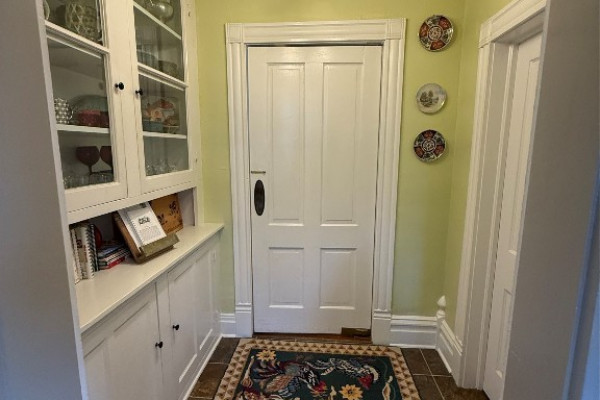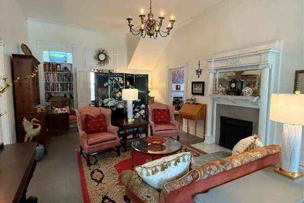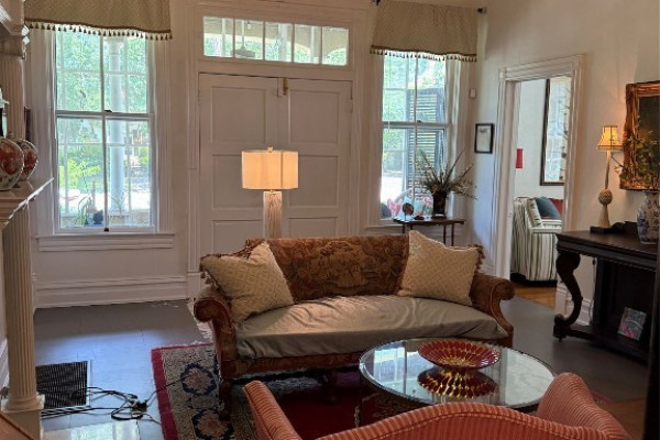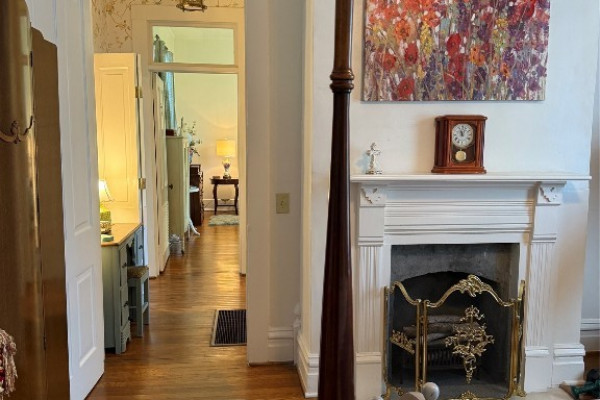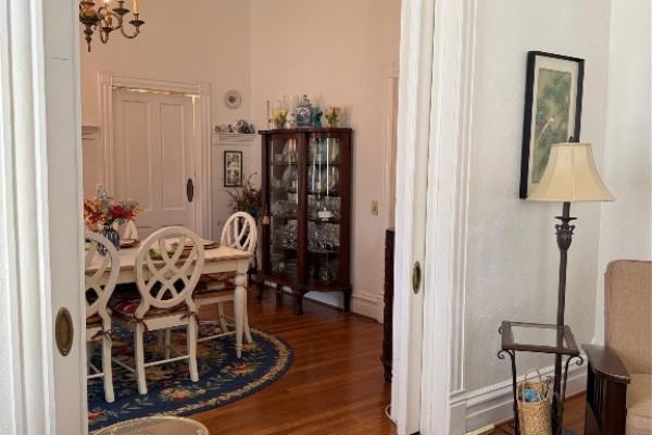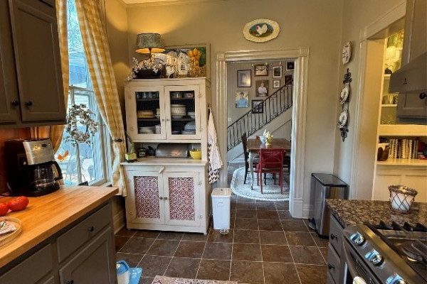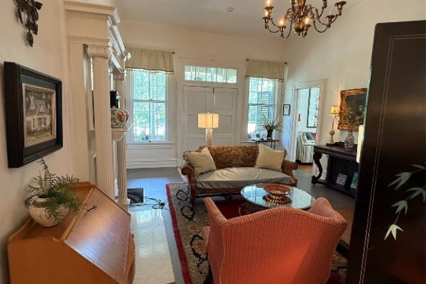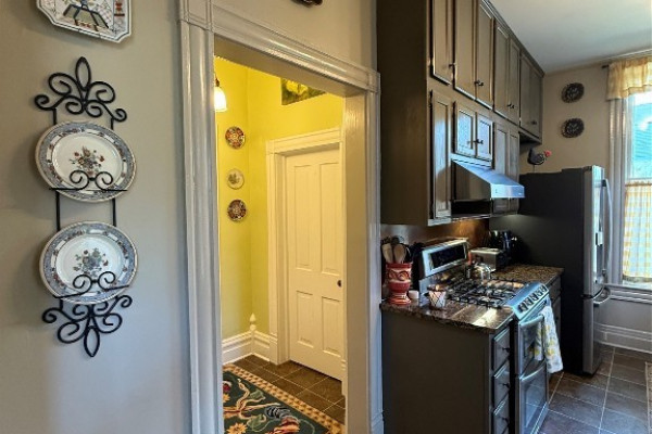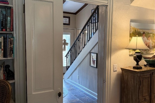 Inside, rich architectural details blend seamlessly with modern comforts. The home showcases tall ceilings, original hardwood floors, vintage moldings and period details that speak to its rich heritage, adding warmth and elegance.