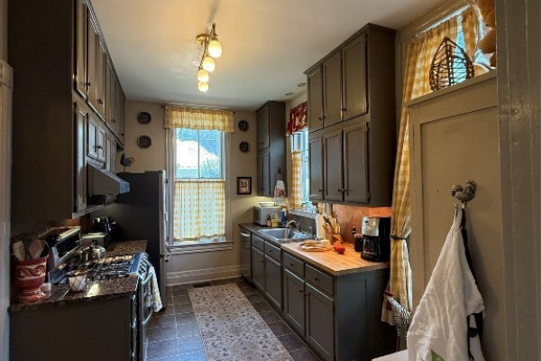Outside, this property truly shines. The home sits on a generous corner lot plus an additional lot, offering room to spread out and enjoy nature. A vibrant rose garden adds color and fragrance, while the expansive back deck is the perfect spot for entertaining, relaxing, or sipping your morning coffee in peace in the confines of a privacy fence. The decorative ironwork continues to frame the porches and outdoor walkways, enhancing the home’s curb appeal and historical presence.