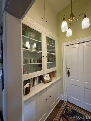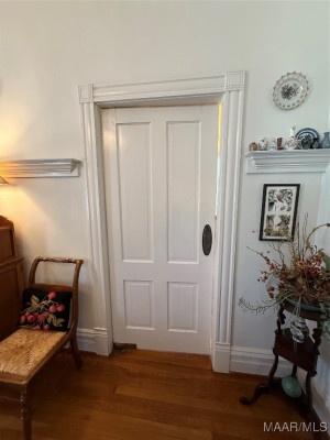 Inside, rich architectural details blend seamlessly with modern comforts. The home showcases tall ceilings, original hardwood floors, vintage moldings and period details that speak to its rich heritage, adding warmth and elegance.