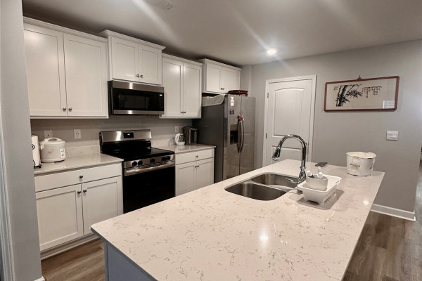 Entertaining is a breeze, as this popular home features a living and dining in the heart of the home, with covered porch just steps away in your backyard. The spacious kitchen features stainless steel appliances, a convenient island with quartz countertops and a walk-in pantry with ample storage. The primary bedroom located in the rear of the home has its own attached bathroom that features a walk-in closet and all the space you need to get ready in the morning. Sharing a sink isn’t a worry with the double vanity.