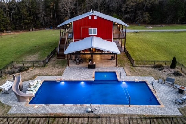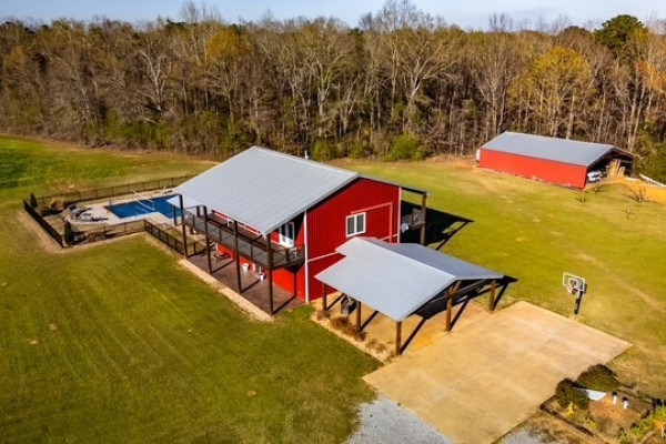 Tranquility at its finest! If you are looking for a peaceful, country setting, then you have found it! This gorgeous two story, 3 bd / 2 1/2 bath home is nestled in the middle of 27 +/- beautiful acres. This wonderful house is in the desirable Holtville school district. It gives off all the rustic charm vibes! Each floor has a spacious living room and kitchen. As you walk out the master door, you enter a beautiful pool oasis with a large, covered porch. It’s perfect for rest and relaxation or family entertainment. The upper level has covered decks, on the front and back of the home, with access from all bedrooms and the upper living room. Right outside the 2-car carport you will be comforted to find a storm shelter to keep you safe during bad weather. Behind this lovely home, sits a large 40 X 60 shop that has space ready to make your man cave or office.