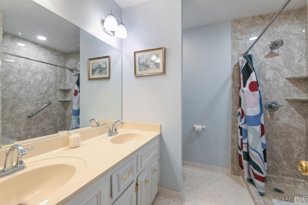 This home features four spacious bedrooms and 2.5 bathrooms, including a recently upgraded hall guest bathroom with a modern shower and a luxurious primary suite complete with a large soaking tub, a separate shower, a dressing area, and three closets, including a walk-in closet for ample storage.