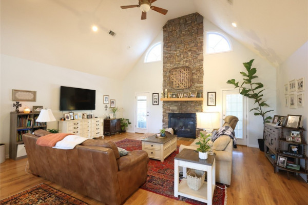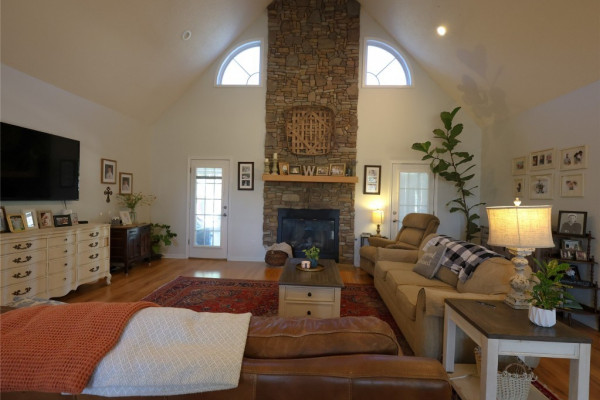 Welcome to this beautiful custom-built 3 bedroom & 2 bath home situated on 20 pristine acres—the perfect blend of luxury living and peaceful country charm. From the moment you walk in, you’ll notice the thoughtful design, open concept layout, and high ceilings that make every room feel spacious, bright, and comfortable. This home was crafted with both family living and entertaining in mind. The tastefully crafted floor to ceiling stone fireplace is an eye catching feature of this home.