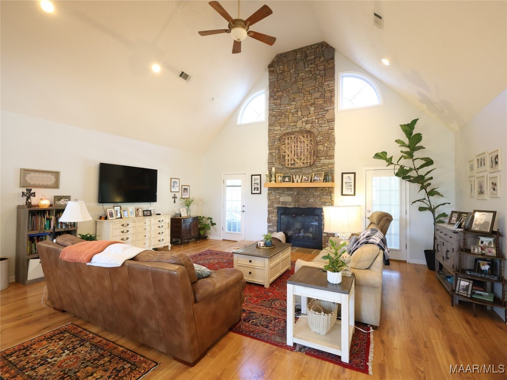 Welcome to this beautiful custom-built 3 bedroom & 2 bath home situated on 20 pristine acres—the perfect blend of luxury living and peaceful country charm. From the moment you walk in, you’ll notice the thoughtful design, open concept layout, and high ceilings that make every room feel spacious, bright, and comfortable. This home was crafted with both family living and entertaining in mind. The tastefully crafted floor to ceiling stone fireplace is an eye catching feature of this home.