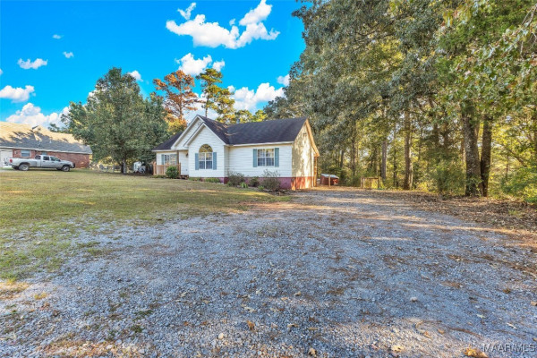 Welcome to 5500 Lightwood Road in Deatsville! This adorable 3-bedroom, 2-bath home sits on nearly an acre in the sought-after Holtville School District. Step inside to find a bright kitchen with stainless steel appliances, a cozy living room with vaulted ceilings and a fireplace, plus a formal dining room perfect for gatherings. The spacious master suite is a dream with two huge walk-in closets and a spa-like bathroom featuring a double vanity, garden tub, and separate shower. Outside, you’ll love the landscaped yard, front and back decks for entertaining, a fully fenced backyard, and a handy detached storage shed. Country living with charm, space, and style all wrapped into one!
