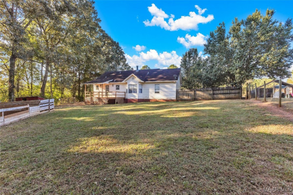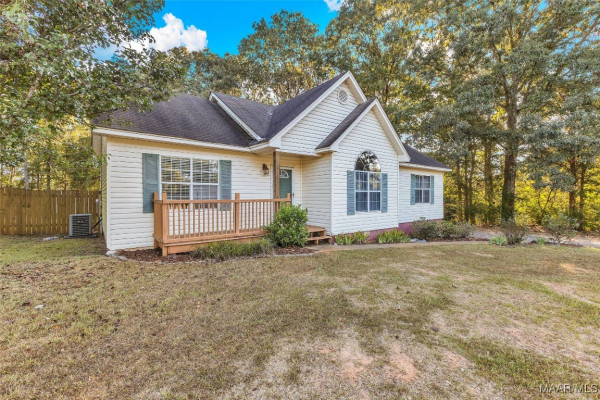 Welcome to 5500 Lightwood Road in Deatsville! This adorable 3-bedroom, 2-bath home sits on nearly an acre in the sought-after Holtville School District. Step inside to find a bright kitchen with stainless steel appliances, a cozy living room with vaulted ceilings and a fireplace, plus a formal dining room perfect for gatherings. The spacious master suite is a dream with two huge walk-in closets and a spa-like bathroom featuring a double vanity, garden tub, and separate shower. Outside, you’ll love the landscaped yard, front and back decks for entertaining, a fully fenced backyard, and a handy detached storage shed. Country living with charm, space, and style all wrapped into one!