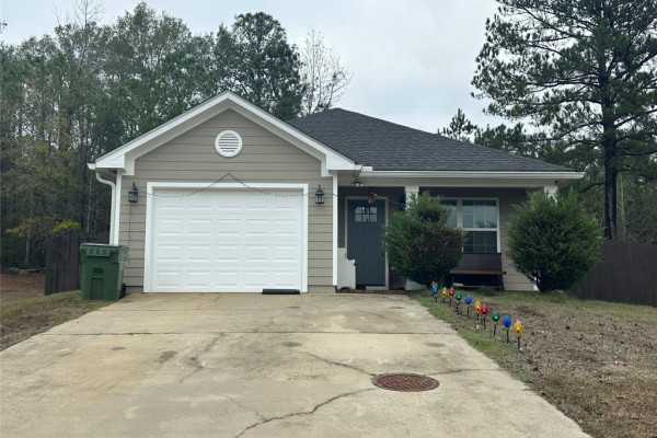 Charming Custom Built Farmhouse-Style Patio Home featuring low-maintenance Hardieboard exterior. This adorable 3-bedroom, 2-bath home lives large with a nice open floor plan. Step inside to a welcoming layout in warm neutral tones and stylish accents. The builders added a touch of the popular farmhouse style with sliding barn doors, granite countertops throughout, and lovely high-end laminate flooring. The master suite is large and has a fantastic en-suite with a large custom shower, double vanity, and walk-in closet. Two other bedrooms are ample in size as well. In the back, there is a nice covered patio area for outdoor living. The laundry room is cute with storage shelves, custom tile, and a folding counter. There is an attached one-car garage with a storage closet.