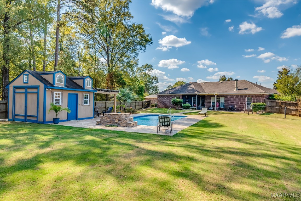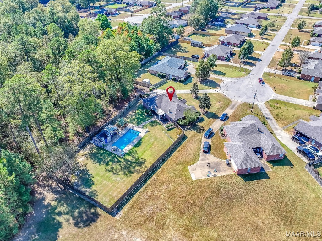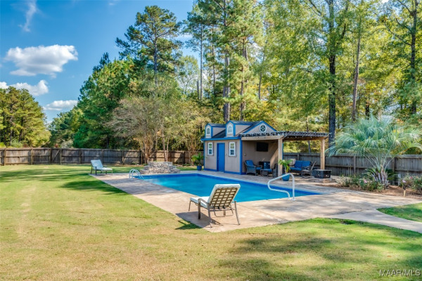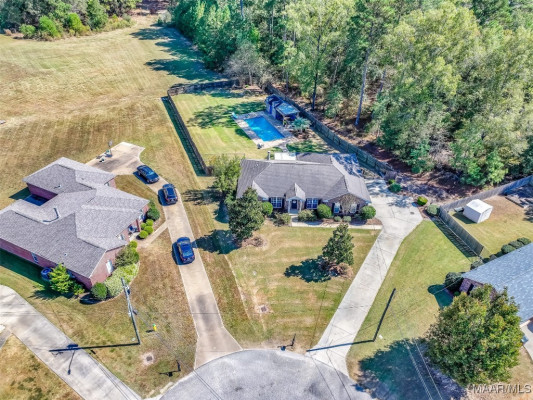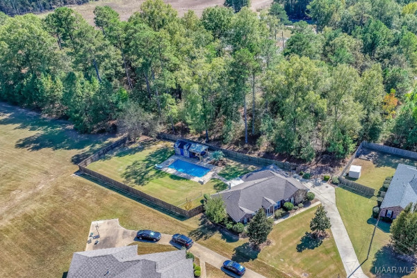Amazing one owner home in Bridlebrook now ready for a new owner! Located on a very private culdesac lot, you will be so wowed from the instant you arrive at this well maintained home! Excellent curb appeal! And you will continue to be wowed when you enter the home. Extremely well maintained and a fabulous floor plan! There’s a formal dining room to the right of the foyer and straight ahead is a spacious great room that’s open to the kitchen and breakfast nook. Split plan, with the main bedroom and bath on one side of the home and 3 bedrooms and another full bath on the opposite side of the home. Kitchen features solid surface countertops, stainless steel appliance’s including a smooth top electric range with a convection, self cleaning oven, microwave, dishwasher, plus plenty of cabinets and counter space, breakfast bar and a pantry! Great room features a boxed ceiling and fireplace. Main bedroom also features a boxed ceiling. Main bathroom has a garden tub, separate shower, double vanity and spacious walk in closet. Step out back to truly your own corner of paradise! There’s a screened in back porch, covered patio plus an additional stone patio, an inground salt water pool with a wonderful custom storage area/pool room with another covered area by the pool! And I have to mention to palm tree by the pool to complete your oasis! Fully fenced oversized yard plus surrounded by a non-developed area in the neighborhood to complete your personal oasis area!!! Make sure you look at the drone photos to see how special this lot truly is!! There also a 2 car garage, architectural roof with ridge vents, a sprinkler system and there is a well on the property for the sprinkler system!! You won’t want to miss out on this opportunity to buy in Pike Road at a rare price! This home is in excellent condition, move in ready! Call today for your personal viewing!!!