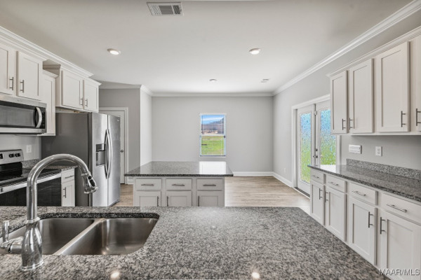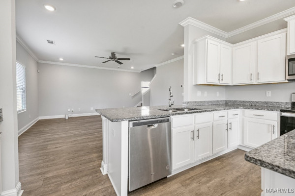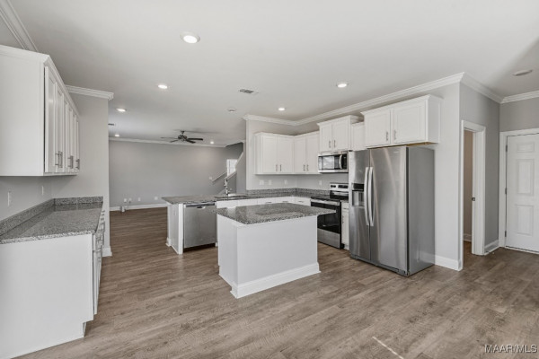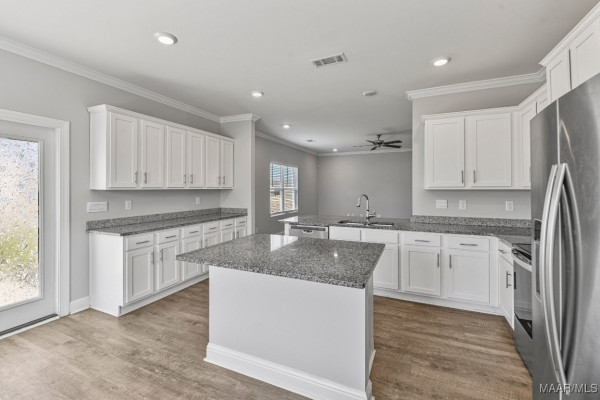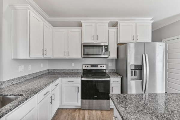 A stunning home, practically new in the highly sought-after Taylor Lakes community of Montgomery, AL. This spacious home offers everything you need for modern living. A gourmet kitchen featuring stainless steel appliances, granite countertops, an island, ample cabinet space, and bar seating—perfect for entertaining. The kitchen has french doors that open onto a covered porch and large back yard. When you enter the home you will see a separate dining room and cozy living room. Following through to the open floor plan kitchen you will find the family room, every family members favorite spot. The first floor also boasts a large pantry, laundry room and half bath.