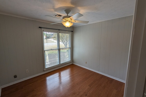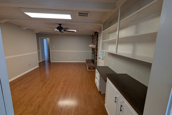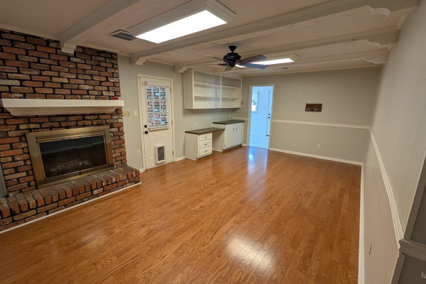 Four bedroom , 2 bath home in the highly desirable Bellehurst Subdivision . Beautiful hardwood floors through most of the home . Large den with built ins , exposed beams and wood burning fireplace . Granite look counter tops in the kitchen with a breakfast nook .Living room or formal dining with a large pantry with butcher block counter tops . Attached and detached storage . Covered patio . Better hurry , this one will not last long